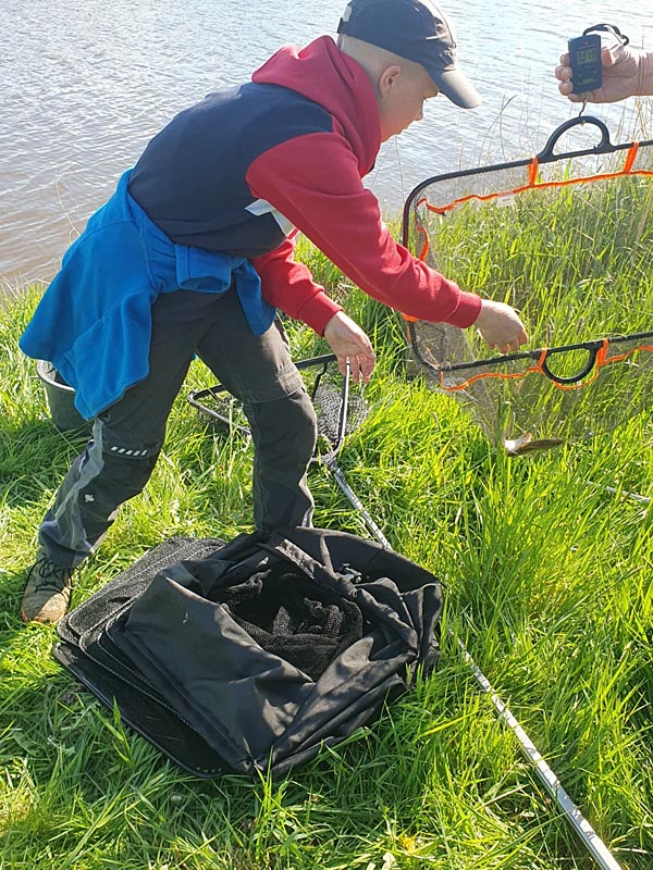 Dario mit seinem kapitalen Fang. Mit zwei weiteren kleinen Fischen brachte er 1700g zusammen und ersngelte sich den ersten Platz in seinem Sektor!