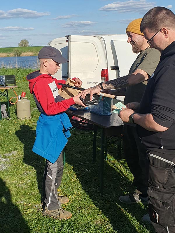 Stefan (Jugendwart Uthlede) bei der Ehrung des Brassen-Fängers!