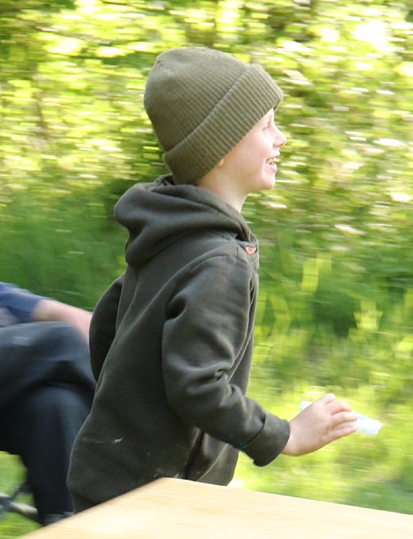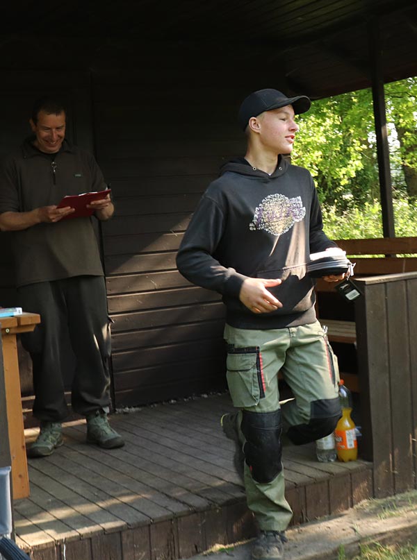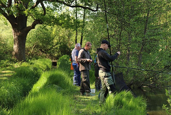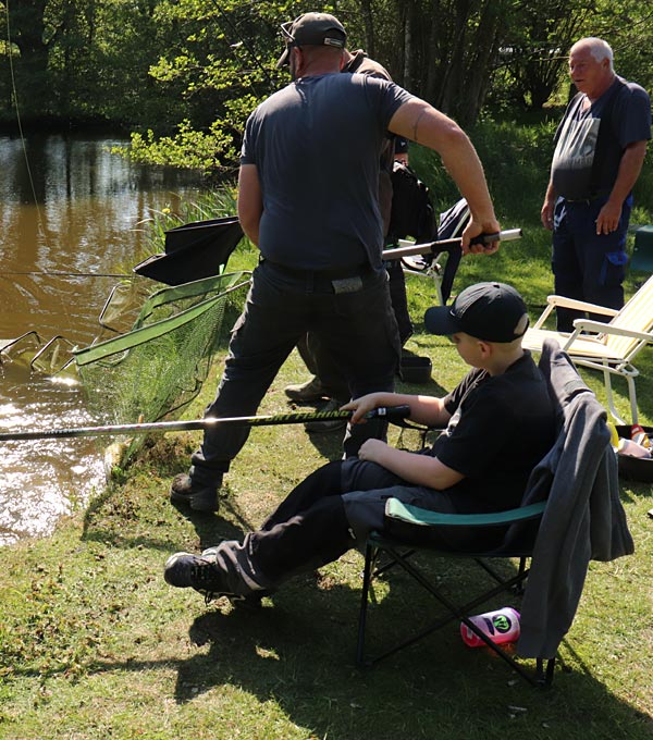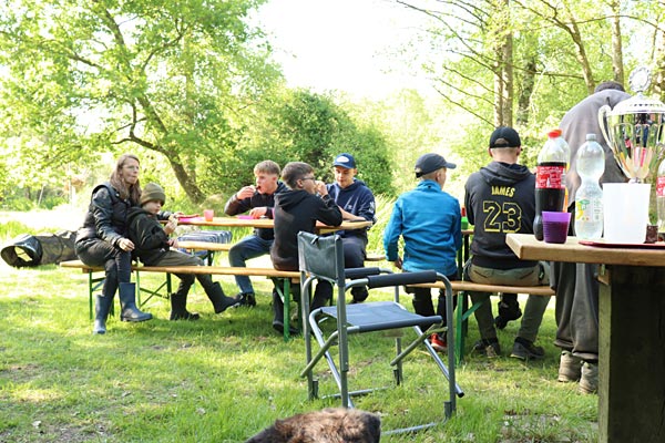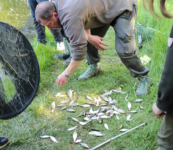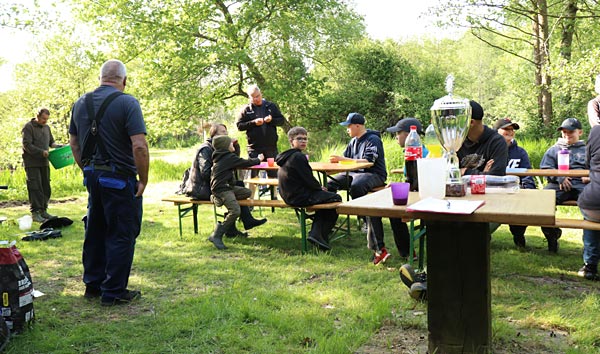 Jeppe war der jüngste am Start. Da er schon vorher spionierte und wusste, dass es für den größten Fisch etwas besonderes gab, setzte er alles auf eine Karte und köderte entgegen aller Ratschläge erstmal einen fetten Tauwurm an. Leider gibt es kein Bild von den überraschten Gesichtern, als er noch wenigen Minuten ein wirklich großes Rotauge fing.