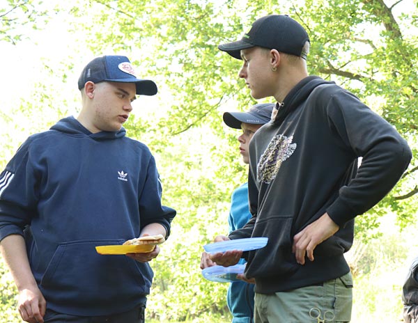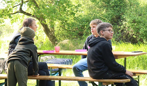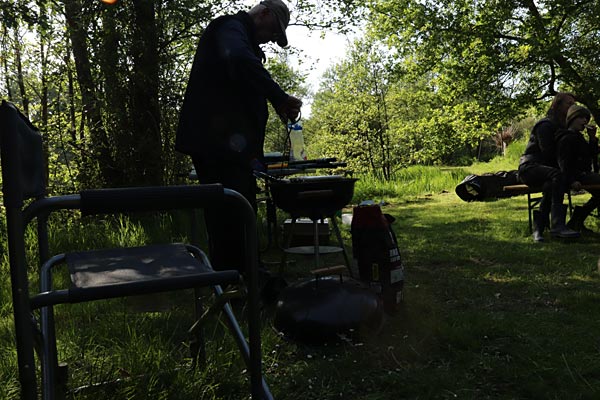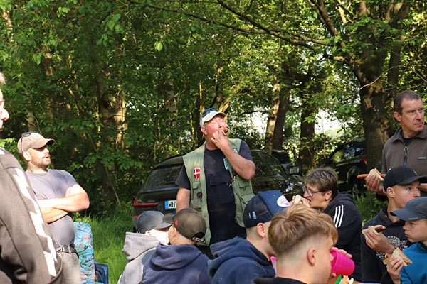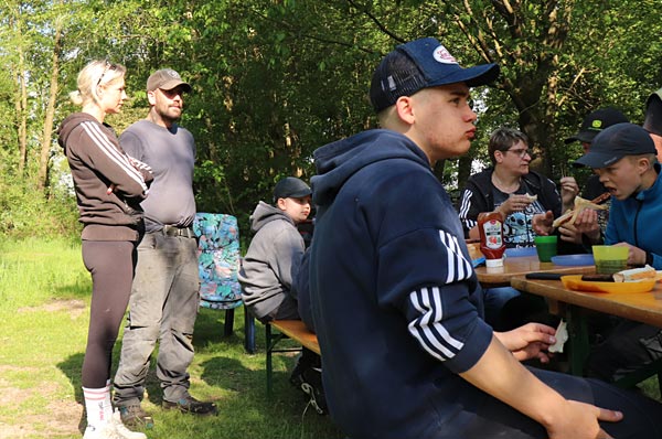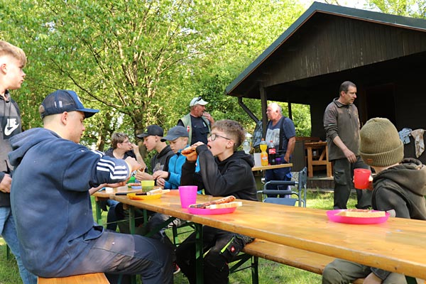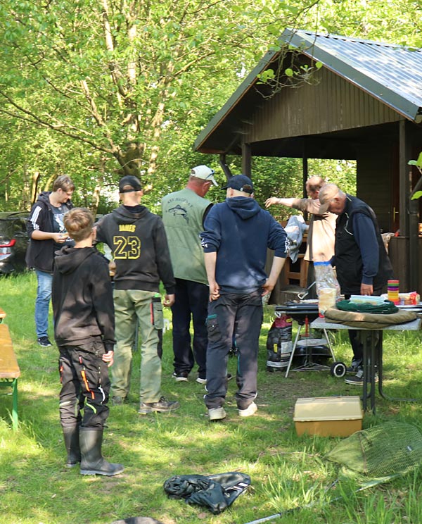 So langsam ist die Bratwurst verschwunden...der Hunger weicht der Neugier auf das Angelgerät, was gleich verteilt wird.