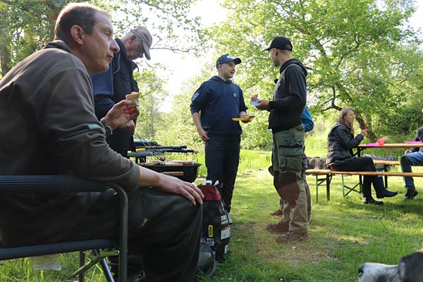 Bevor das Angelgerät verteilt wird, essen die Helfer erstmal die Reste auf....