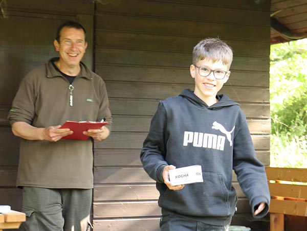 Luis hat sich Platz 2 erangelt mit 90 Fischen und bekommt einen tolle Rolle.