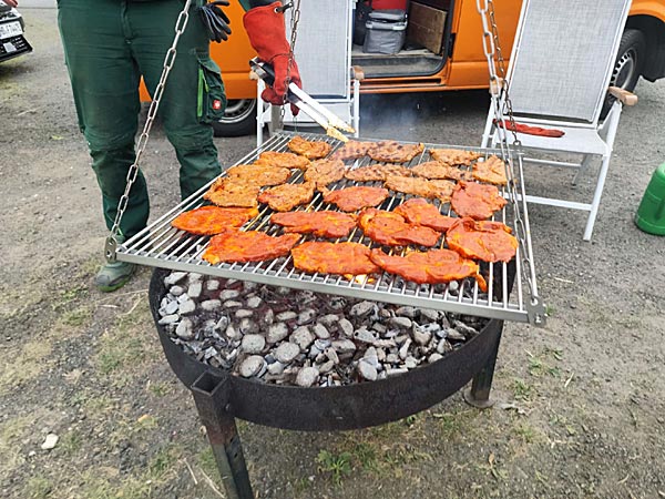 Die gute Nachricht zuerst: alle haben hervorragend gegessen! Dank unseres Sponsors, Carsten Salinski, Gartenbau gab es nicht nur reichlich gutes Grillgut, sondern der Sponsor persönlich stand auch am Grill!