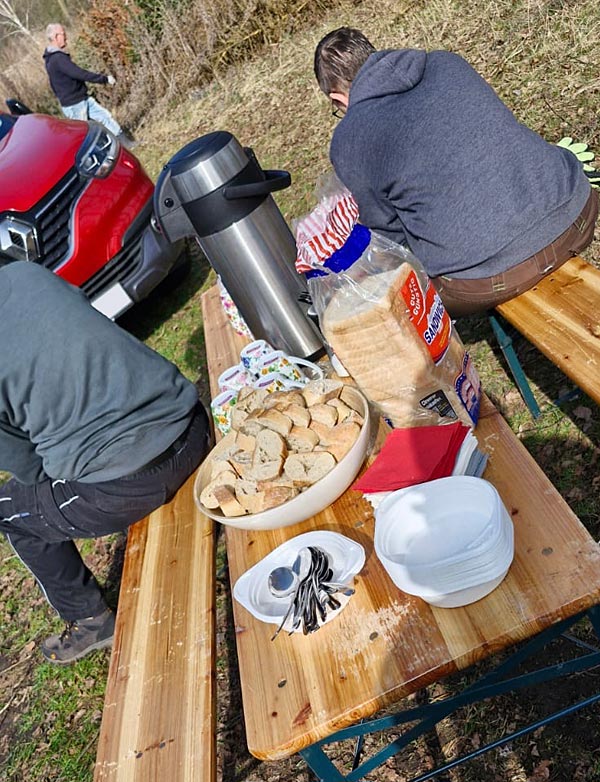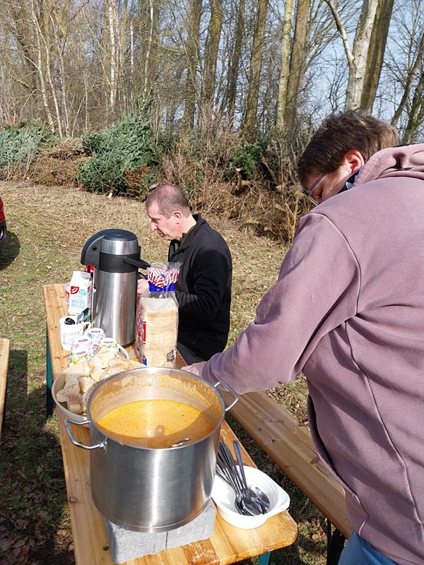Nachdem an der Deichseite und am Aalteich alles erledigt war, gab es erstmal Getränkepause. Ganz schön warm geworden.