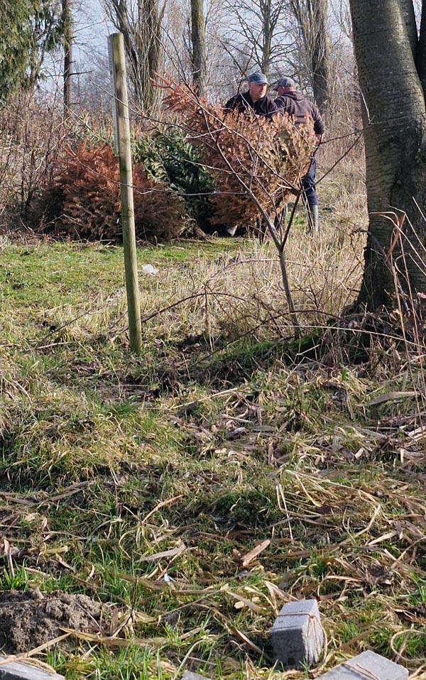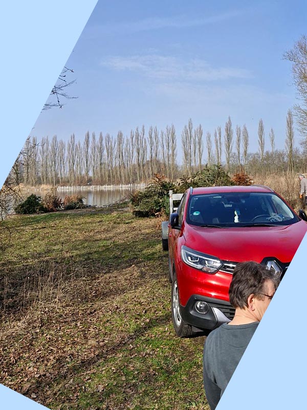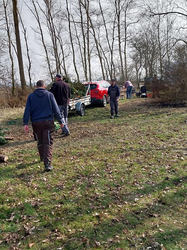 Viele Hände, schnelles Ende. Der Tannenbaumhaufen wurder schnell kleiner. Die Beweise unserer Arbeit liegen im Wasser, Fotos haben wir leider ab hier vergessen und erst beim Mittagessen wieder daran gedacht.