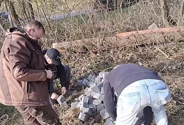 Die Steinkolonne schafft weiter Beschwerungen heran...