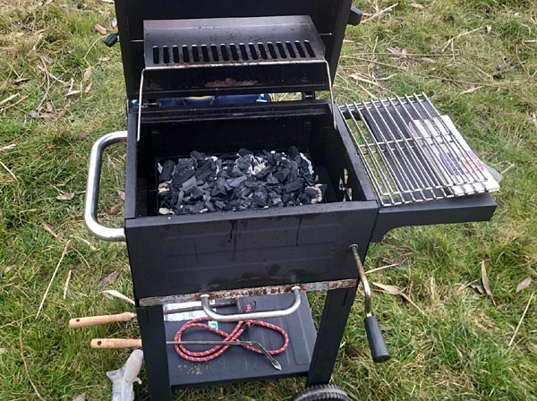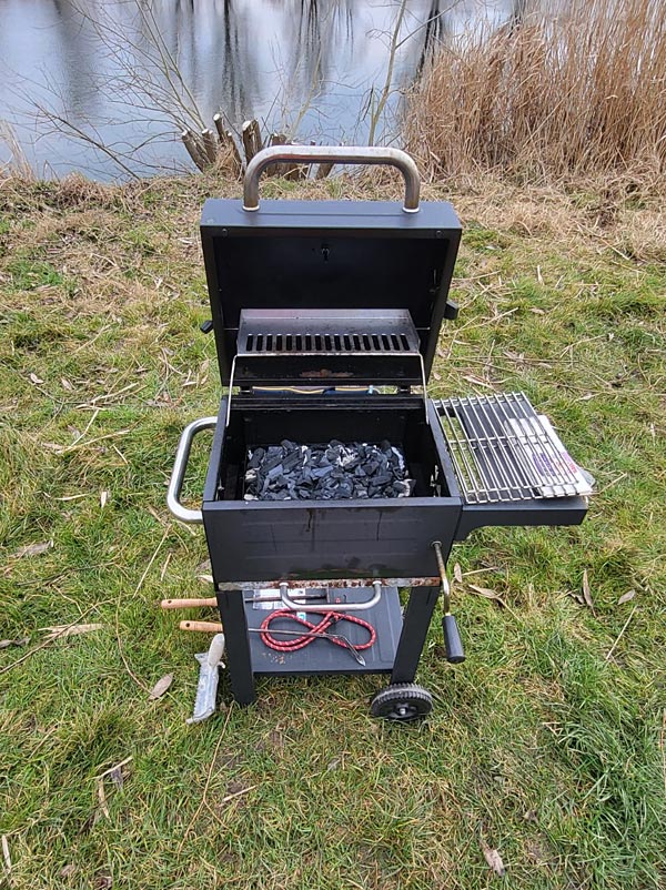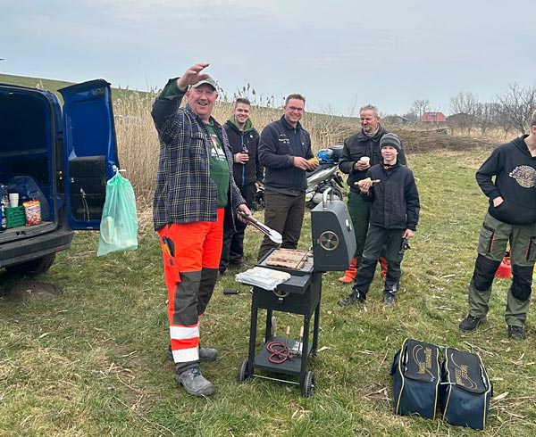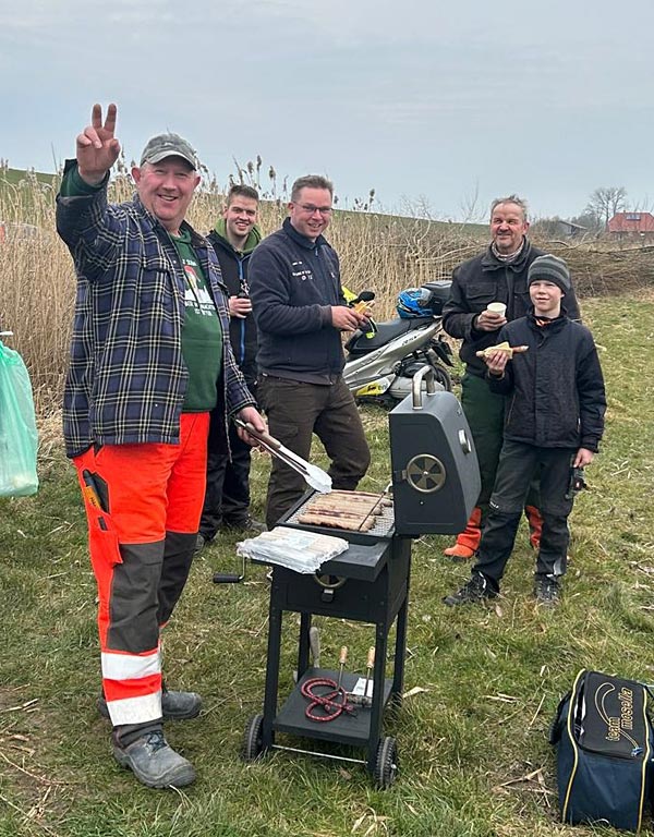 Markus heizte rechtzeitig den Grill an, denn wer arbeitet, soll auch gut essen.