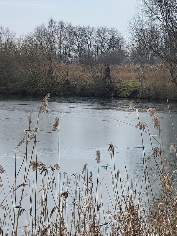 Und das, obwohl noch eine dünne Eisscholle auf dem Teich trieb.