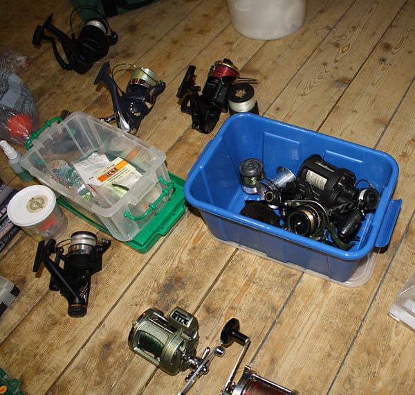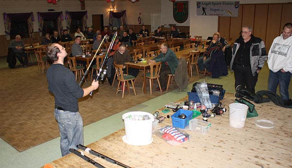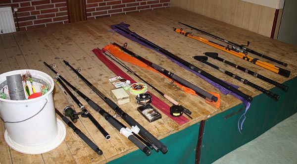 .. viele Ruten, Rollen und sonstige Angel-Utensilien lagen zur Begutachtung aus ..