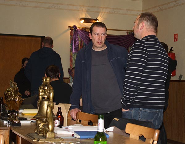 Jan und Frau haben dieses Jahr den Saal vorbereitet und die Theke für den Abend "klar" gemacht;