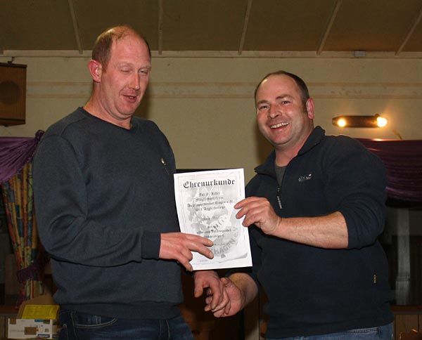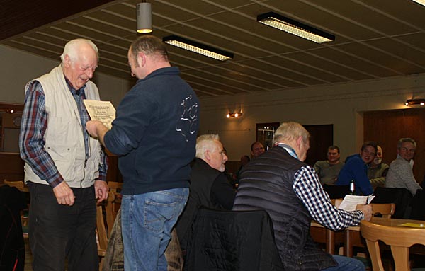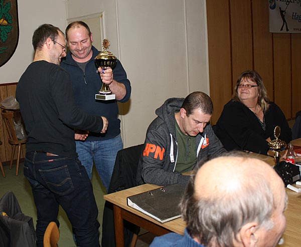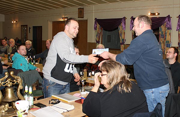 Am Ende der Versammlung verteilte der Sportwart die Ehrengaben für die erfolgreichen Angler des letzten Jahres.