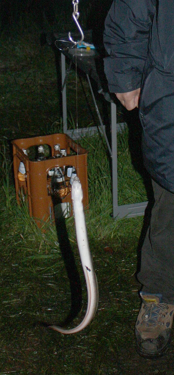 Leider war dieser 160g Aal die einzige Beute (ein kleinerer Aal wurde nach Angelschluss an der Rute von Lars "gefunden")