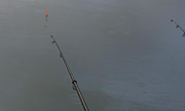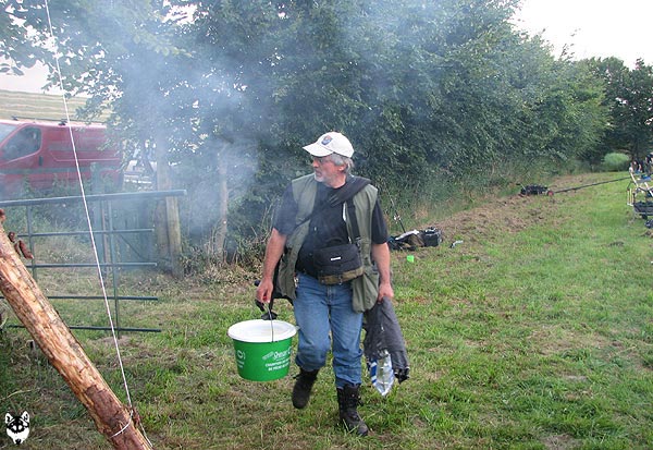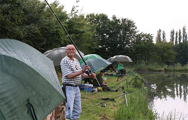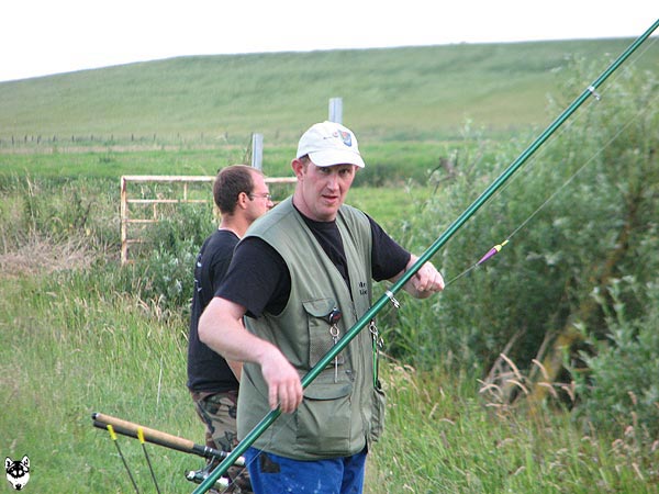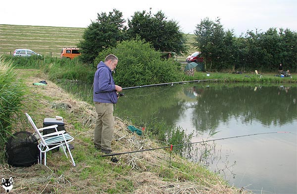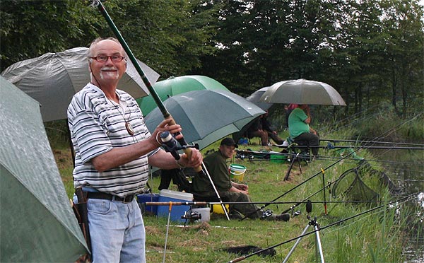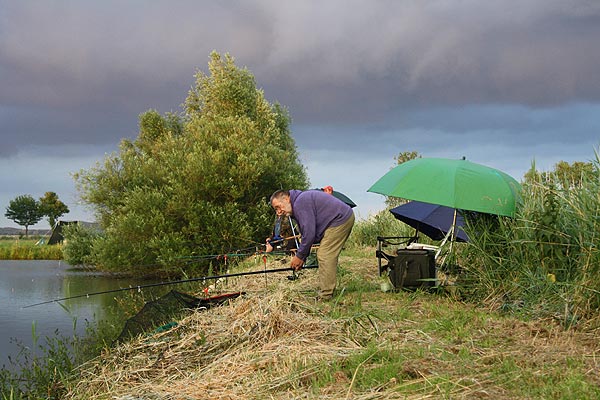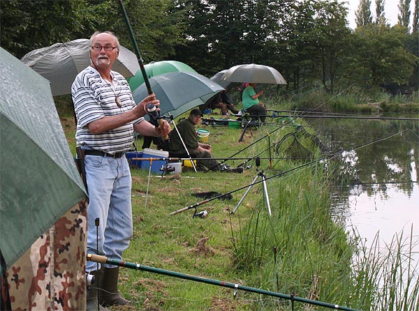 Auch Grillmeister Gunter macht mal Pause und kümmert sich um seine Ruten.