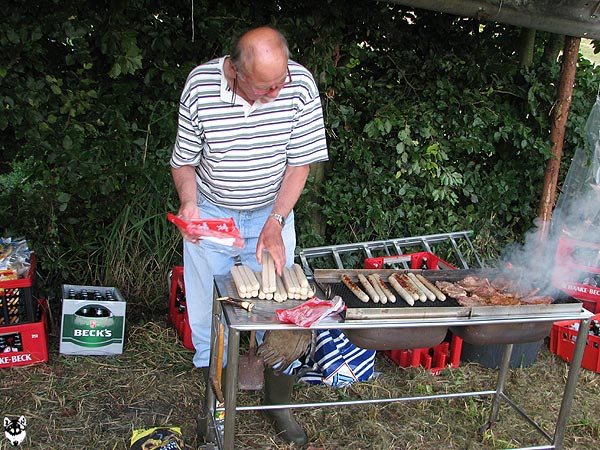 20.11Uhr; Grillmeister Gunther legt die erste Lage auf ..