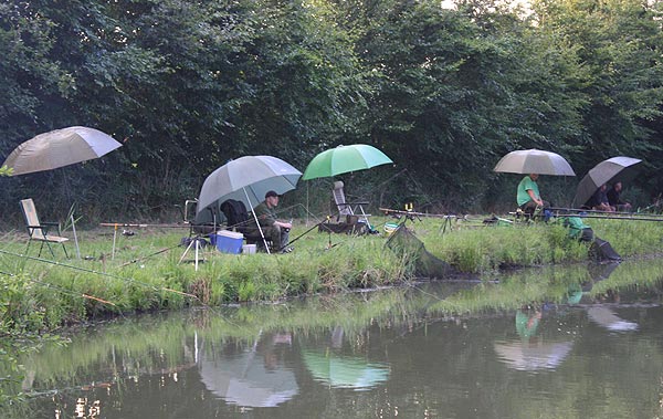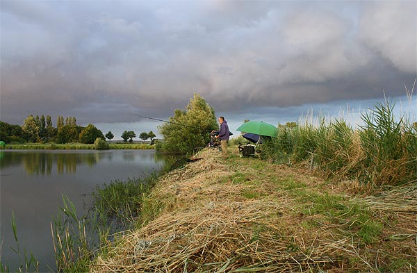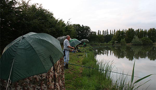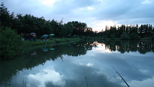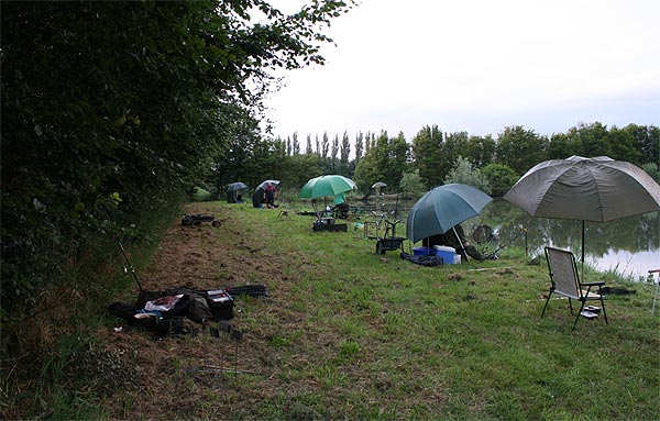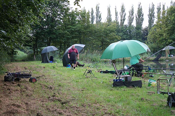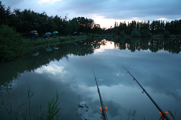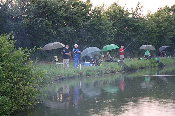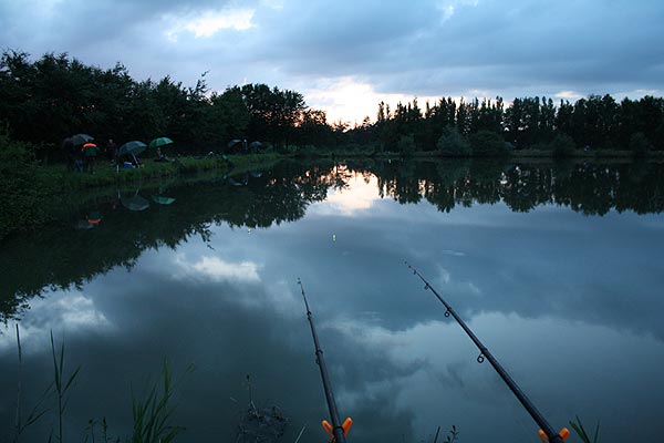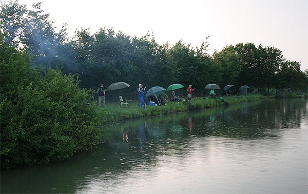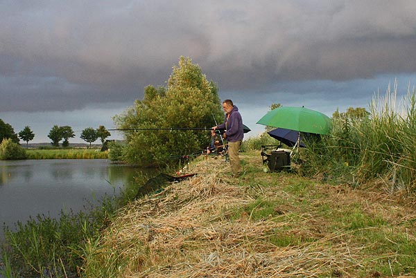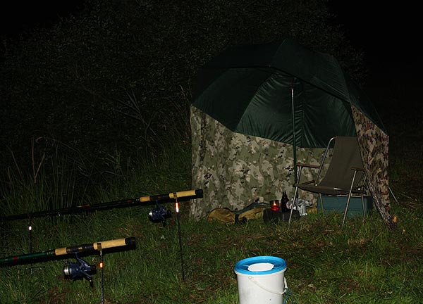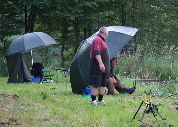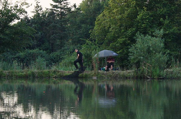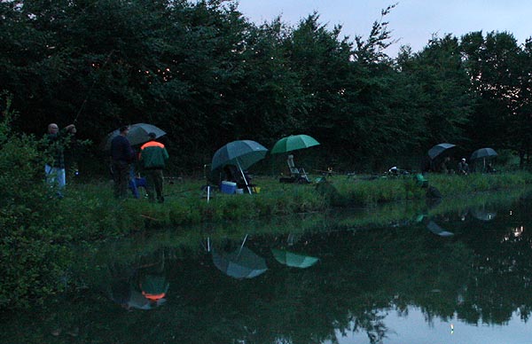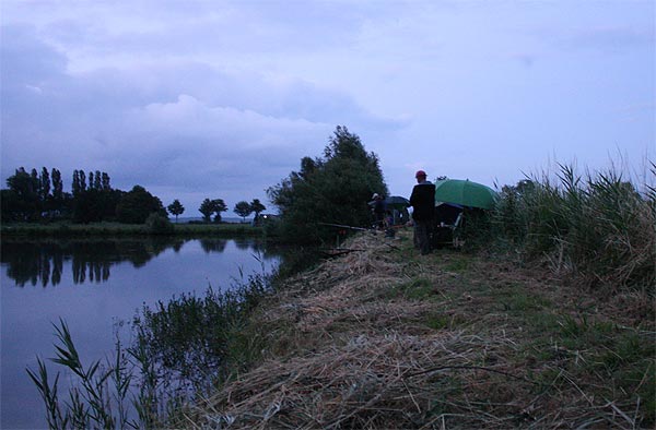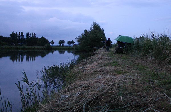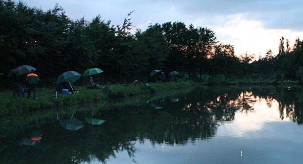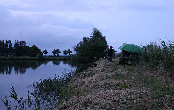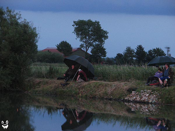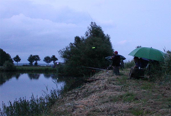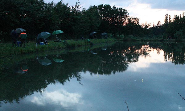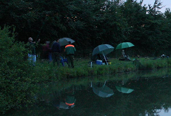 21.14Uhr; ein kleiner Schauer zieht vorbei .. *flupp* und schon sind alle Anglerschirme geöffnet ..