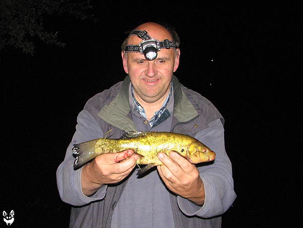 Seine Taktik ging nur in Teilen auf: er verlor später einen richtig guten Aal in der Böschung.