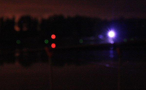 Knick-Licht-Spur in der Nacht; .. ausholen und einwerfen .. man kann die Flugbahn sehen ;-)