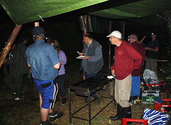 23.58Uhr; .. unter'm Schutzdach reißt der Verkehr nicht ab.. Gunther dreht weiterhin das Grillgut ..
