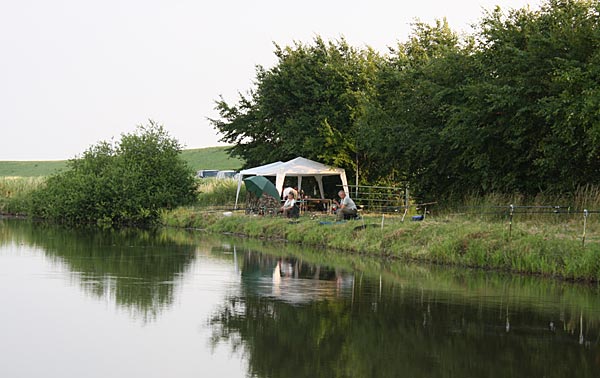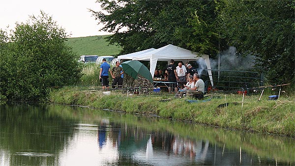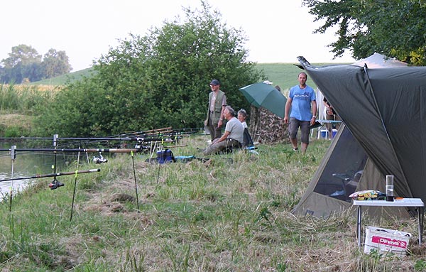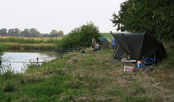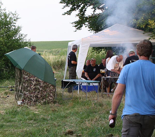 Wie immer gab es kurz vorm Angeln ein Gewitter - woanders durchaus heftig, hatten wir aber Glück und konnten alles bei leichtem Regen aufbauen.
