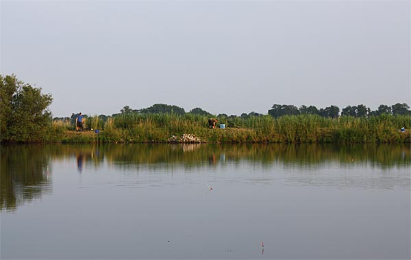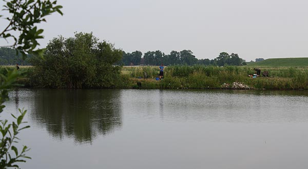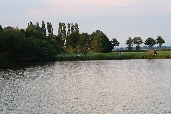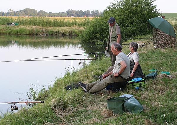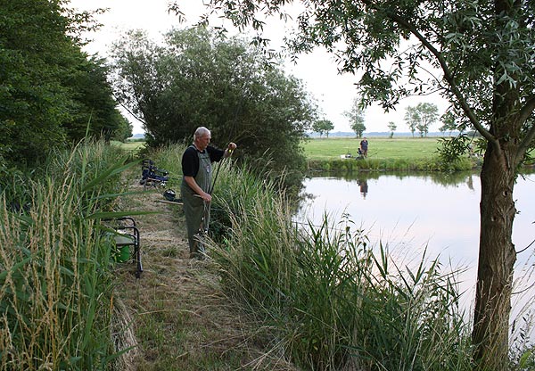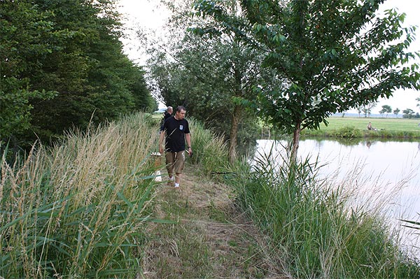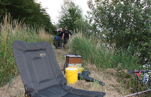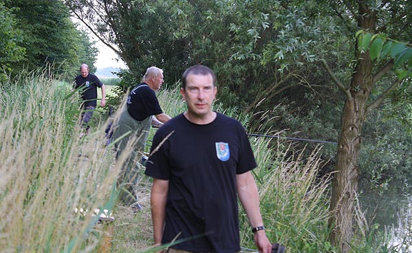 Auf der Wiesenseite hatten sich Michael, Roland, Frank und Rainer eingefunden. Die weitesten Plätze zum Laufen, aber oft auch Garant für gute Fänge, da weniger Trubel am Wasser.