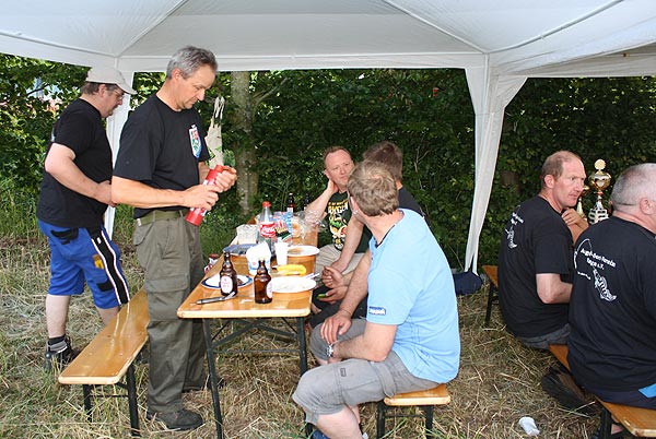 Dank auch an Marcus und Uwe für den Transport und Aufbau von Grill, Biertischgarnituren und Pavillon und an alle, die Zusatzgetränke oder Eis auf den Markt geworfen haben (Lars, Maik, Roland, Rolli).