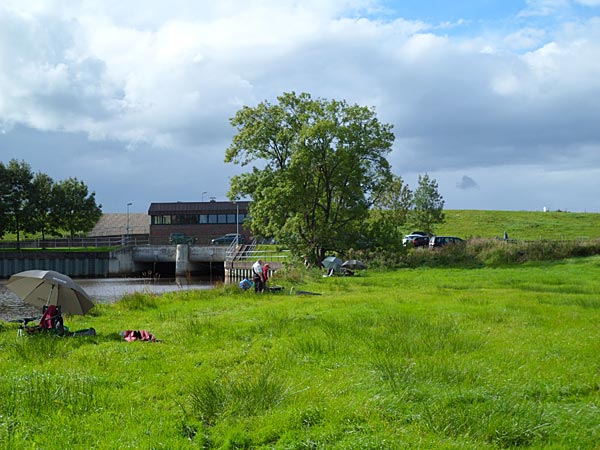 Zum Glück war es zum Auspacken und Einpacken trocken. Geangelt wurde am Nordufer direkt am Drepter-Siel.