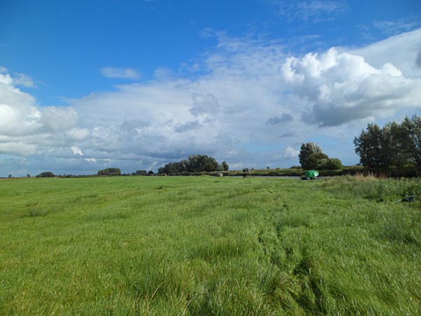 Das strahlende Grün der Wiese täuscht - ab und zu gab es schon mal einen heftigen Regenguß!