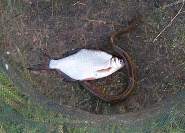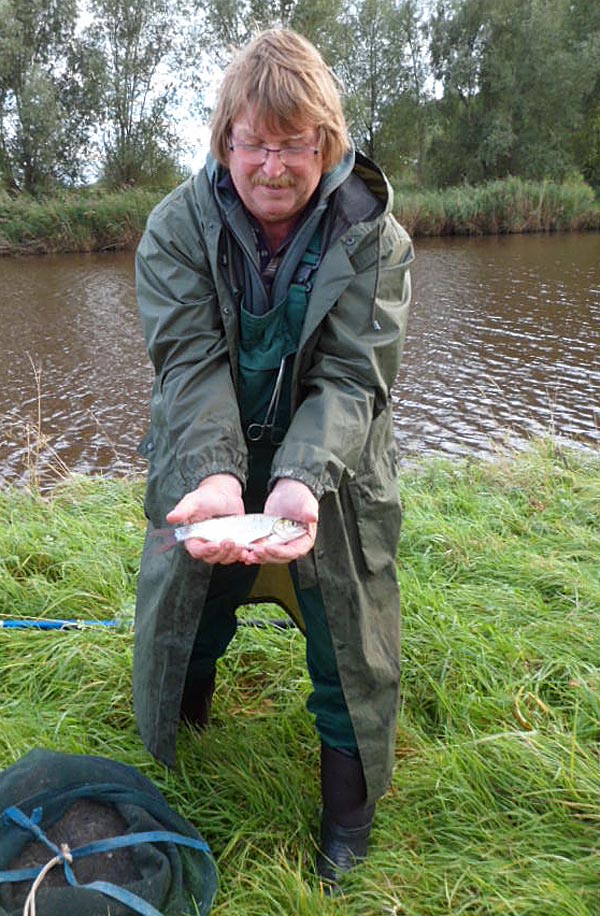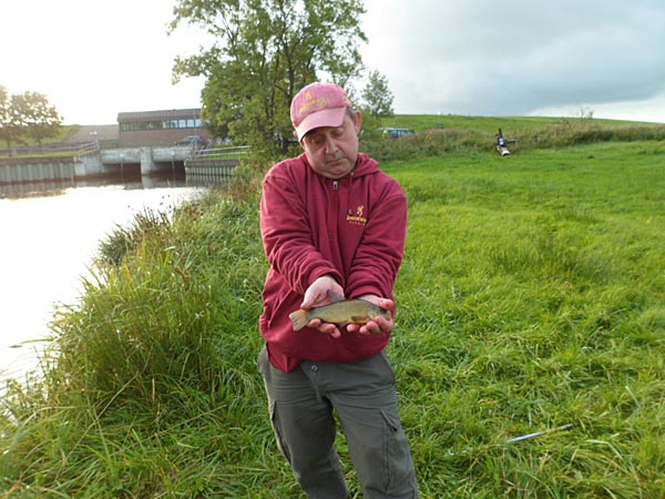 Matze hatte eine Güster und einen ca. 15cm langen Aal! Offenbar gibt es doch noch einige, die den Weg von der Sargasso-See in die Drepte finden.
