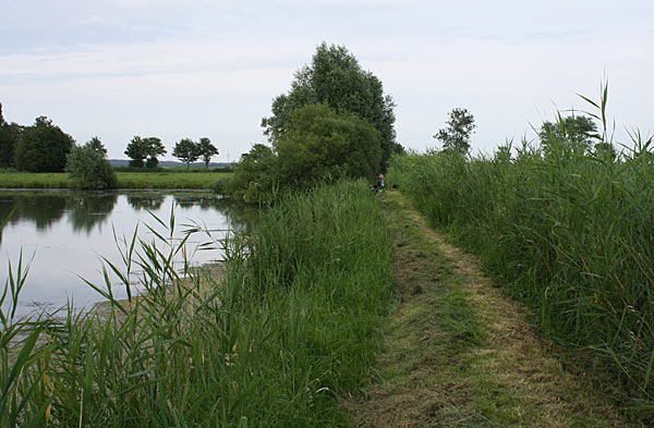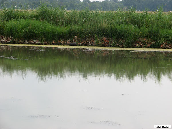 Das warme Wetter hat den Wasserstand gedrückt und das Kraut explodieren lassen. Auf der der Deichseite waren nur noch vereinzelte Krautinseln zu sehen: einige "Badefreunde" hatten sich an den vorangehenden beiden Wochenenden geopfert und mit der Harke für Platz gesorgt. Dummerweise gibt es wohl immer noch Angler, die ihren Müll im Gewässer entsorgen, denn ein Helfer hatte sich am Fuß eine Verletzung und eine schwere Entzündung eingefangen - vermutlich der Deckel einer Maisdose!