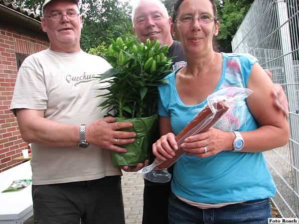 Und für die besten Fischfänger eine Mettwurst und eine noch ein großes Blümchen.