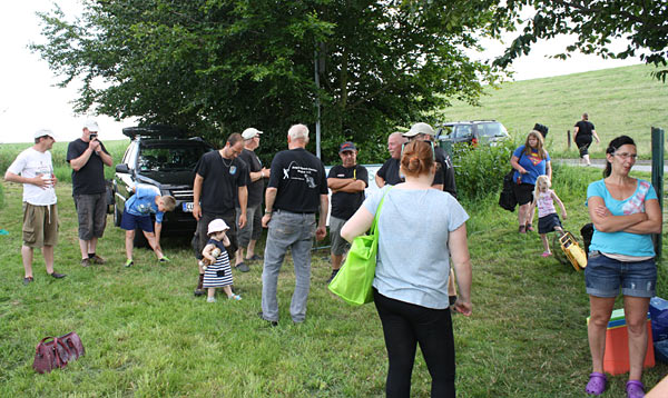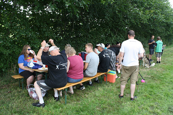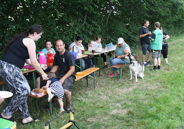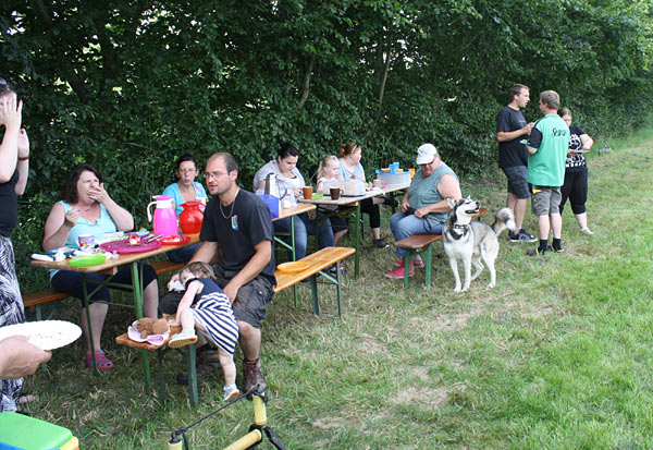 Schnell versammelt sich alles bei den Biertischgarnituren - Danke an Marcus für den Transport!