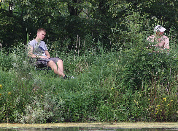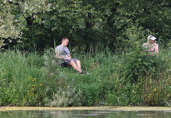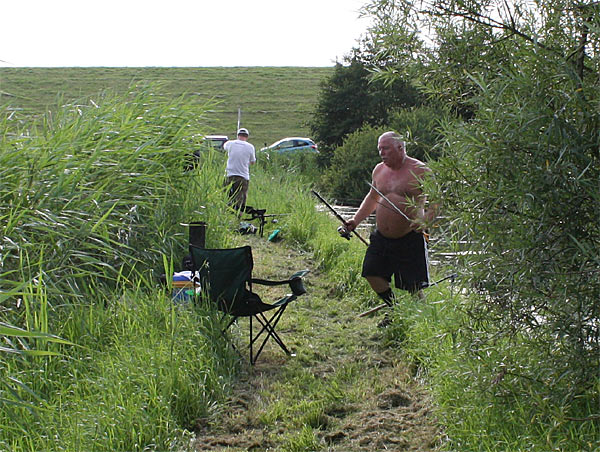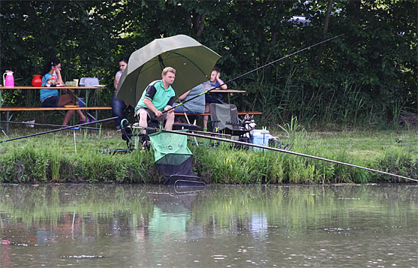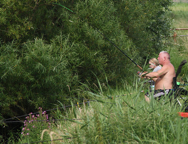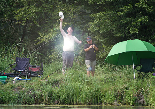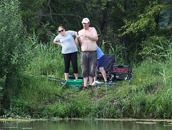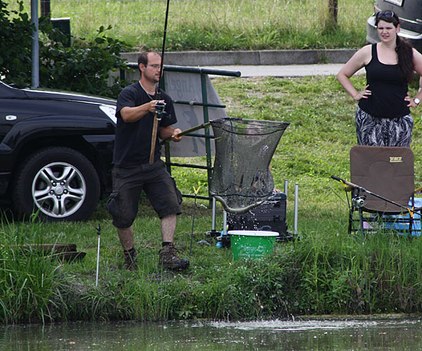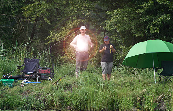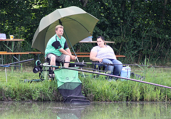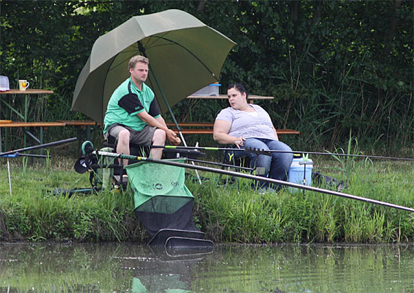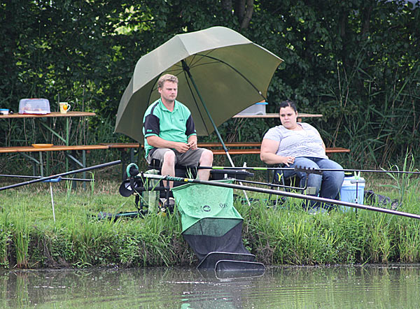 Rüdl und Bettina haben den Platz ganz hinten zwischen den Büschen erwischt - gefangen haben sie dort am Besten.