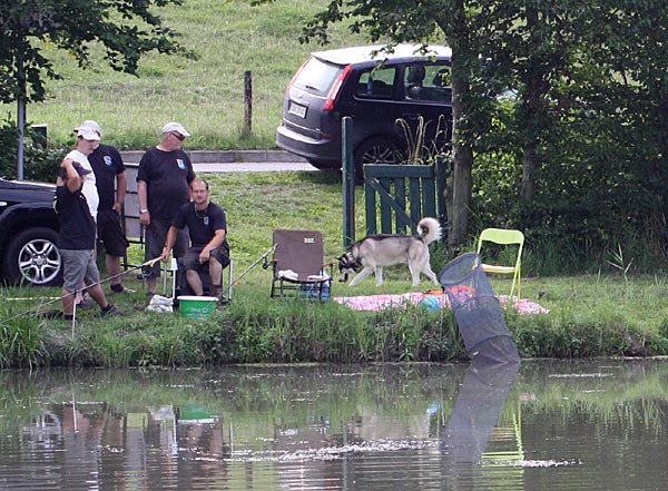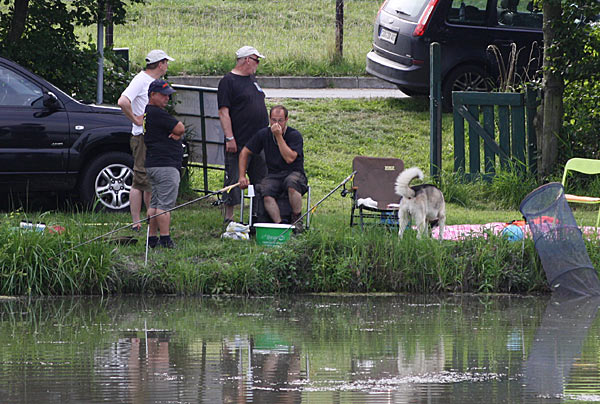 Wenn die Fische nicht beißen gibt´s zum Glück noch Hunde zum Spielen!