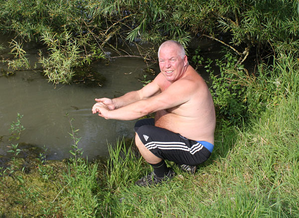 Auch am linken Ufer pralle Sonne. Mit dem Bäumen im Rücken war es dort noch heißer, sodass Marcus sich seiner Kleidung entledigte