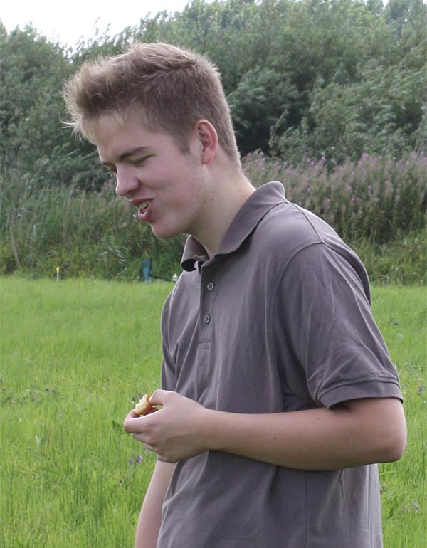 Marcus hat am anderen Ende des Tisches noch was leckeres zum Essen entdeckt....