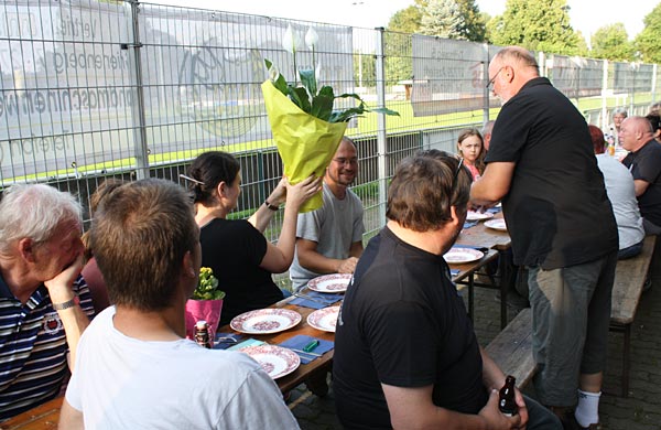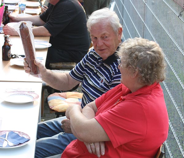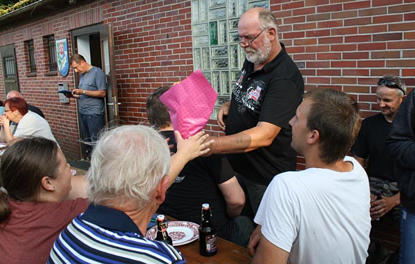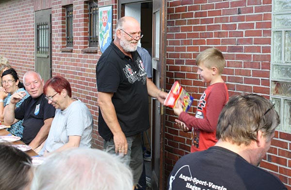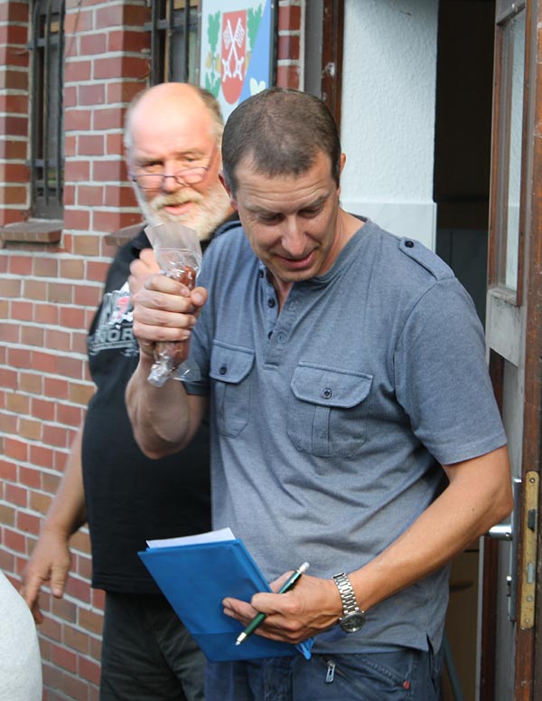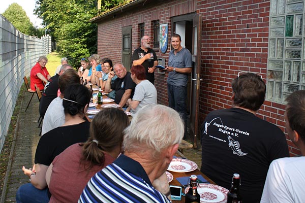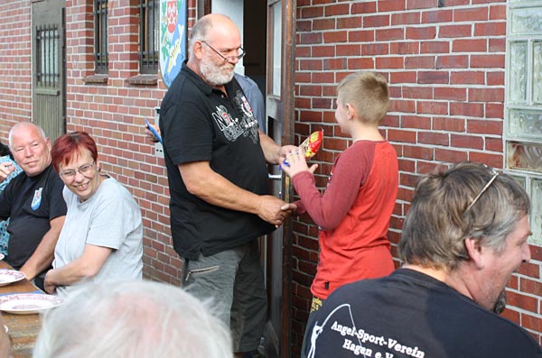 Uwe hat die Ehrengaben besorgt, Andreas verlkündet die Fänge.