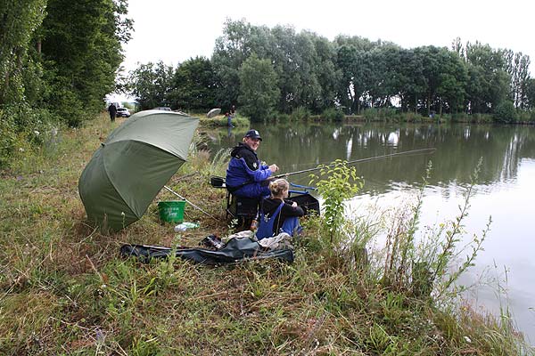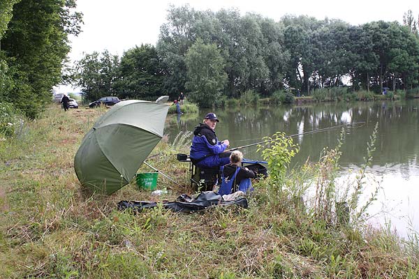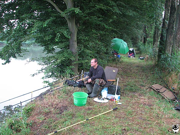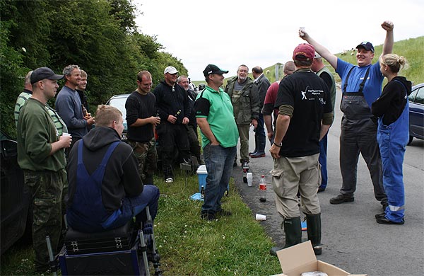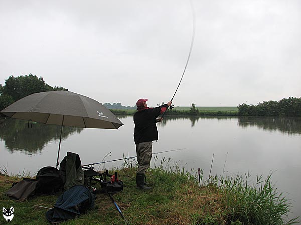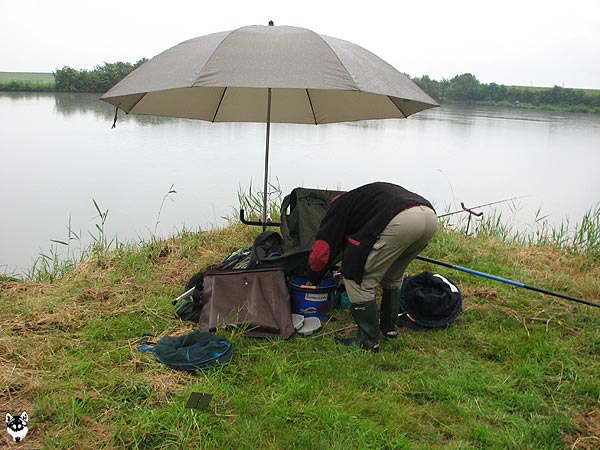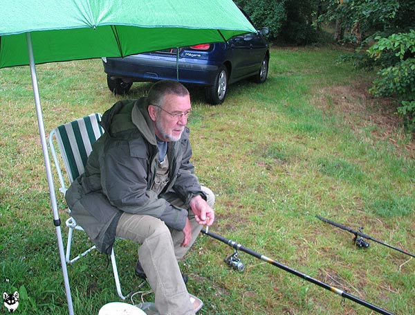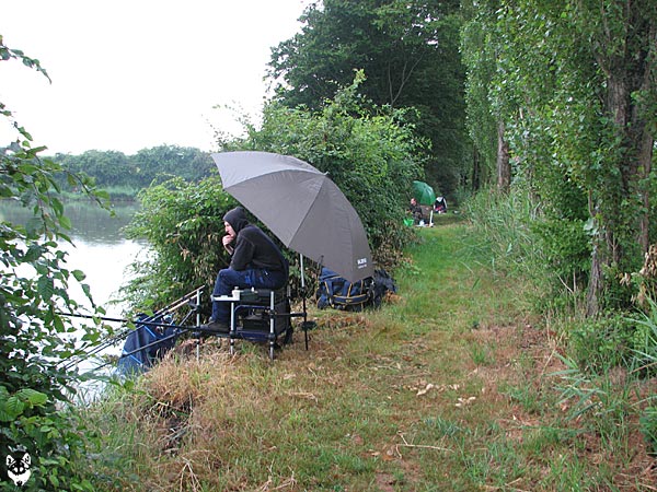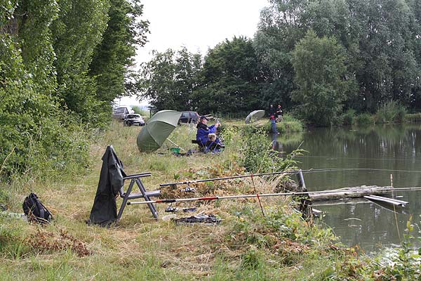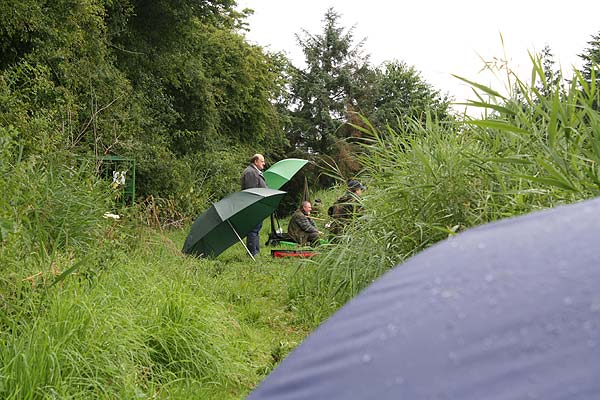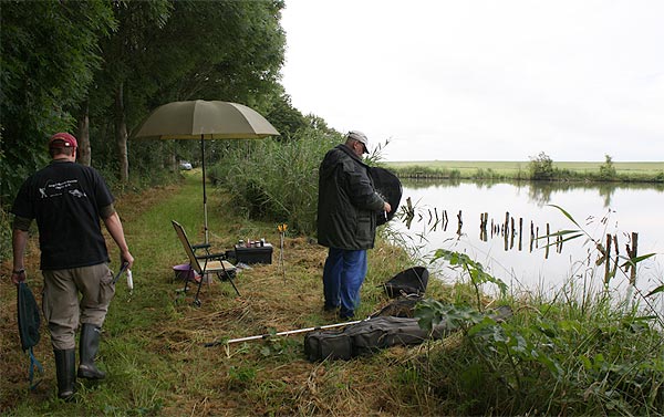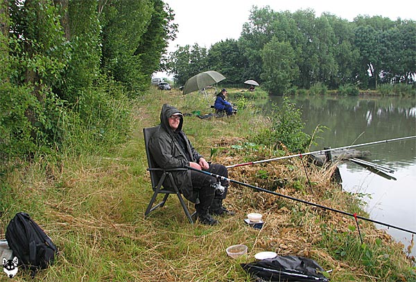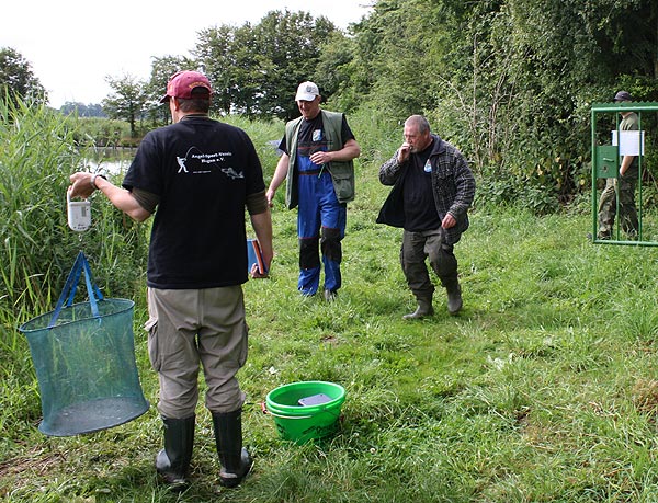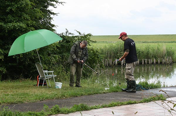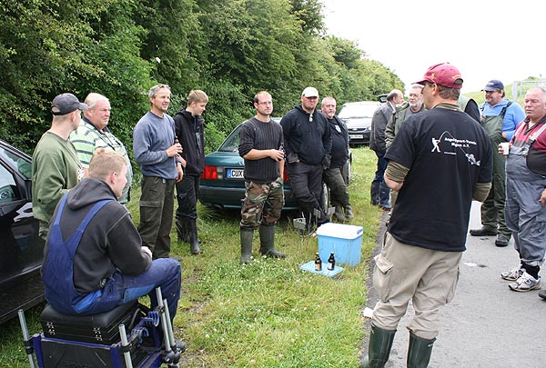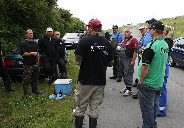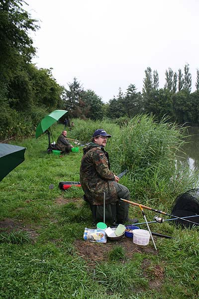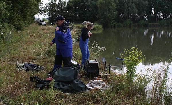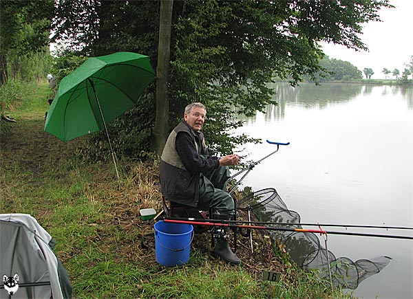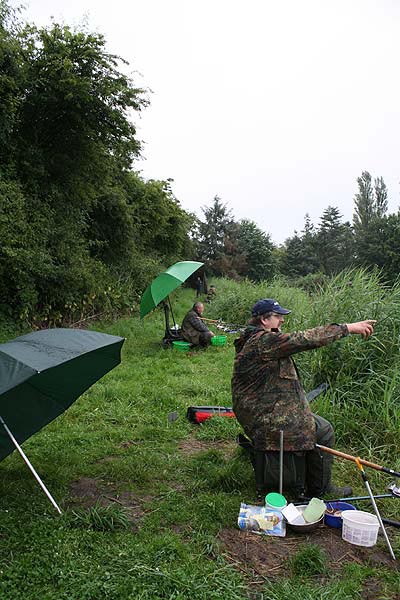 Im strömenden Regen trafen sich 18 Angler (davon 1 Jugendlicher), um den Fischen im Vereinteich nachzustellen.
