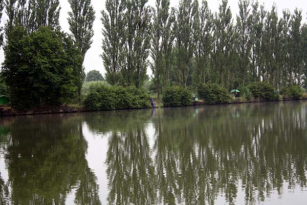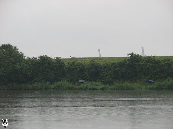 Entsprechend sah man auch am Gewässer zunächst überall Schirme. Zum Glück hörte es bald auf zu regnen.