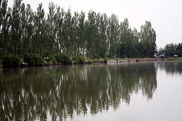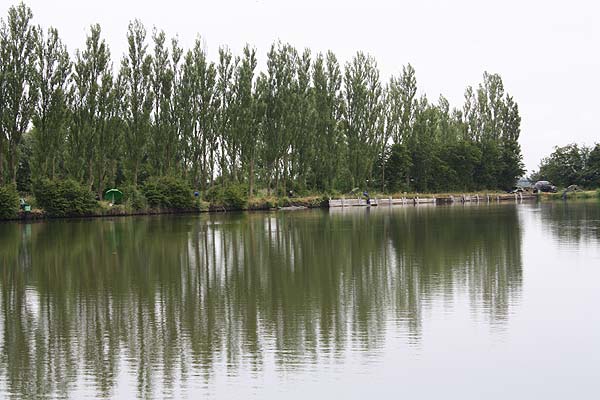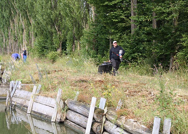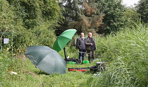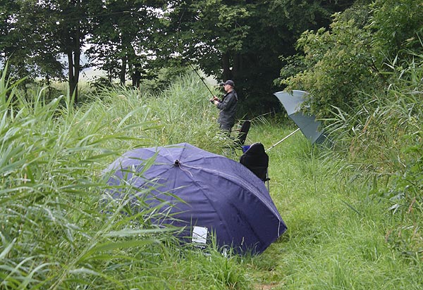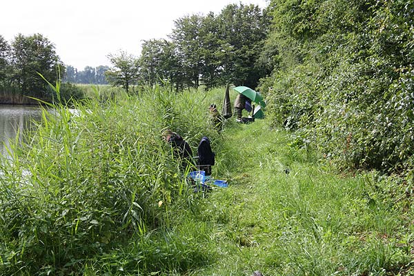 Geheime Absprachen im Gebüsch - bei 18 Anglern am Teich sollte man sich vor dem Auswerfen einigen, wo es hingehen soll.