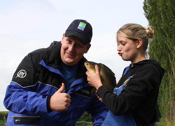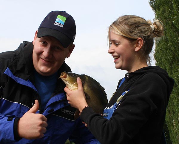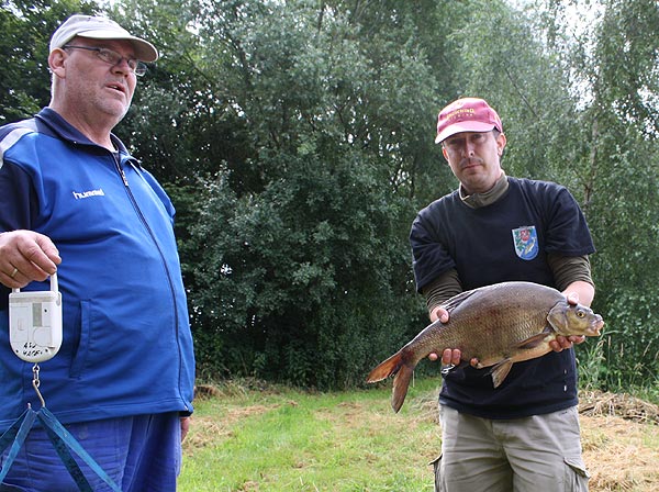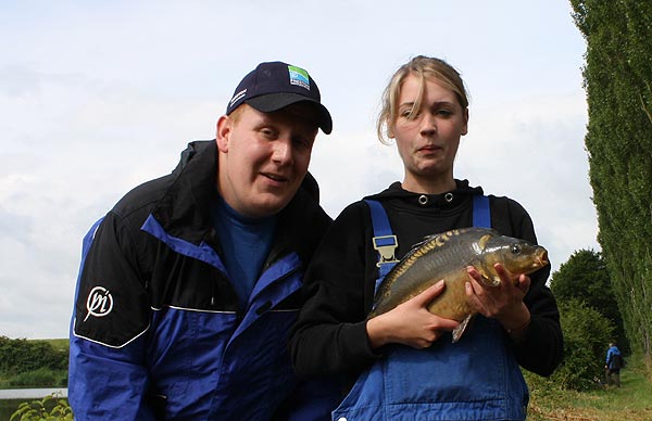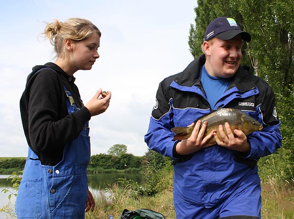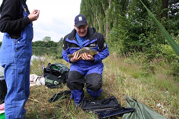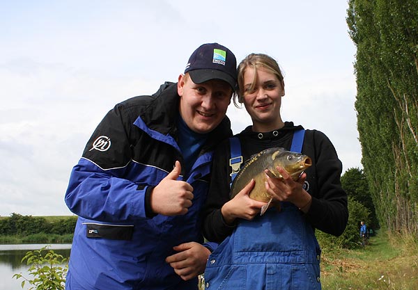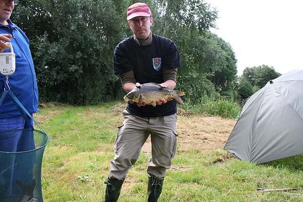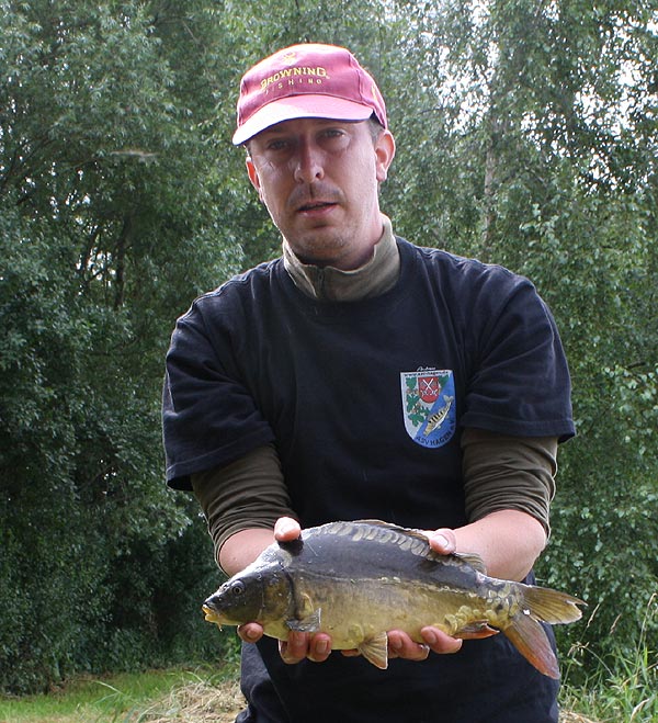 Auch Björn hat einen Karpfen erwischt.