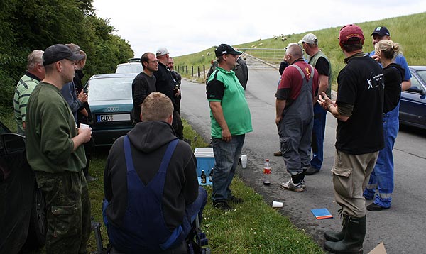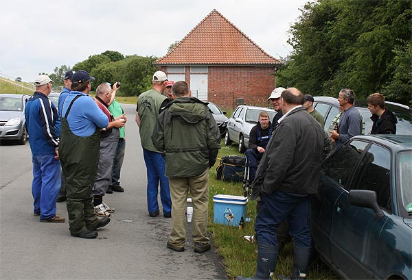 "Jetzt könnte hier aber auch was beißen", denken Heiko und Rolf an der Deichseite.