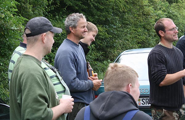 In der Ecke sitzen Rüdl (hinterm Schirm) und Sven.