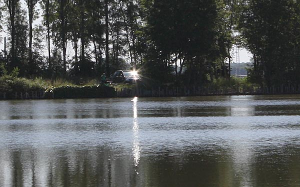 Im Gegenlicht ist nur etwas grünes zu erkennen: ein Frosch? Nein, Rouwen im Sensas-Trikot!