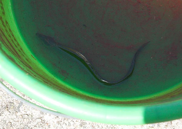Rouwen fing einen Aal, dessen Ausmasse im Eimer kaum abzuschätzen sind: knappe 10 cm!