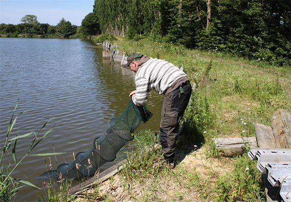 Andreas hält einen seiner Lieblinge im Arm: ein kleiner Spiegelkarpfen aus dem diesjährigen Besatz. Er hat sich gut eingelebt.