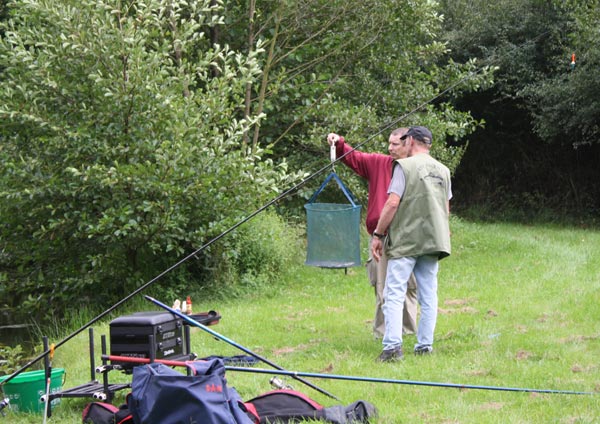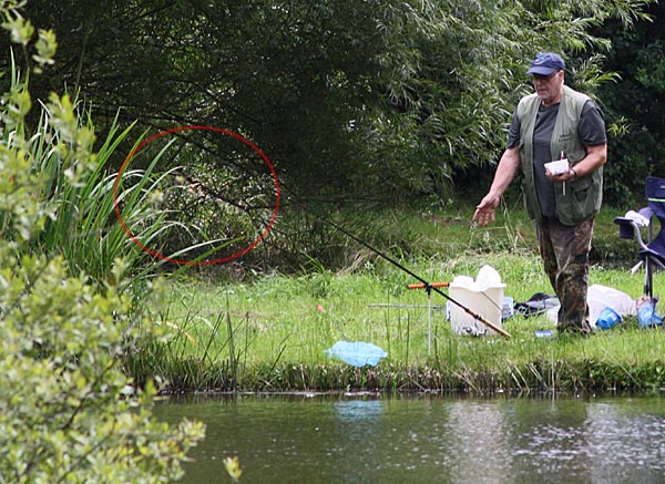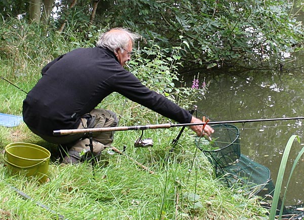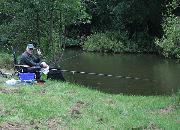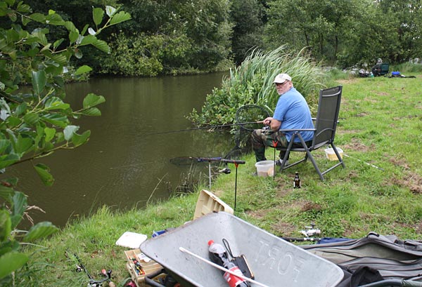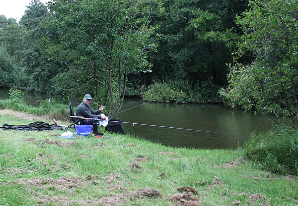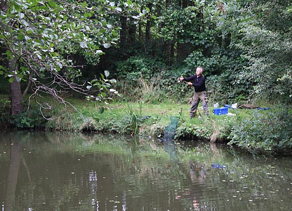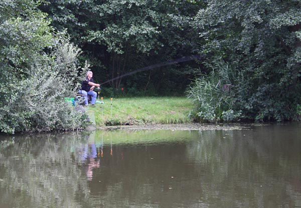 Rolf und Olaf hatten die beiden letzten Plätze im rechten Arm gezogen. Auch hier ging es rund. Zur Entspannung wurde bei Rolf zeitweise auch ohne Köder geangelt.......