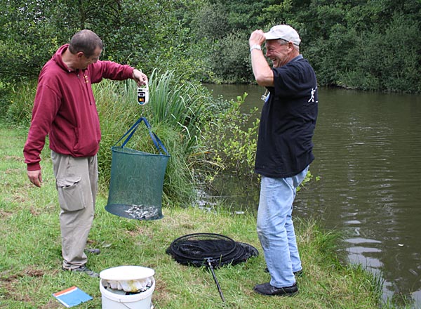 Michael holte sich vorm Start noch ein paar Tipps von Andreas - und beklagte sich hinterher, dass er keine ruhige Minute hatte: FIsch auf Fisch fand den Weg in den Kescher.