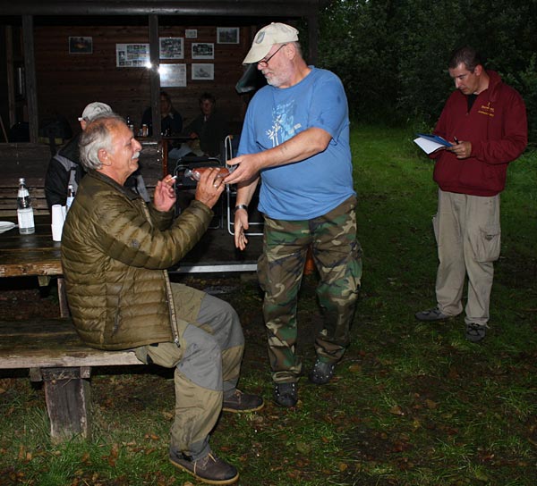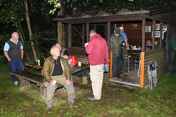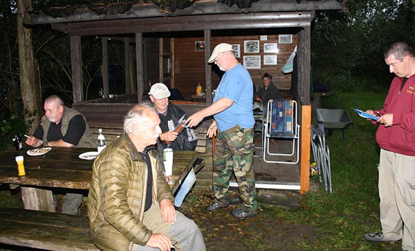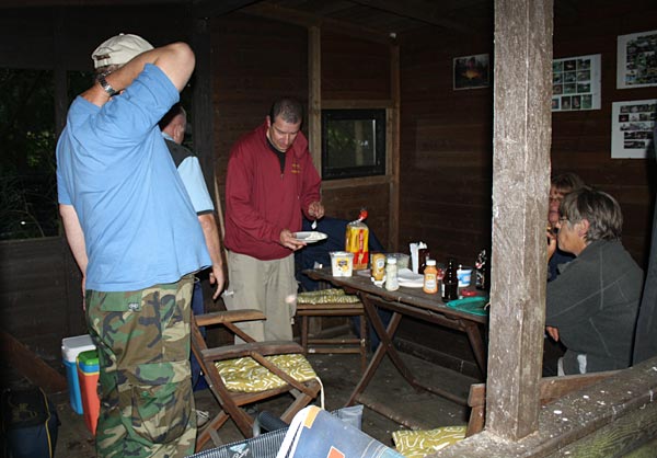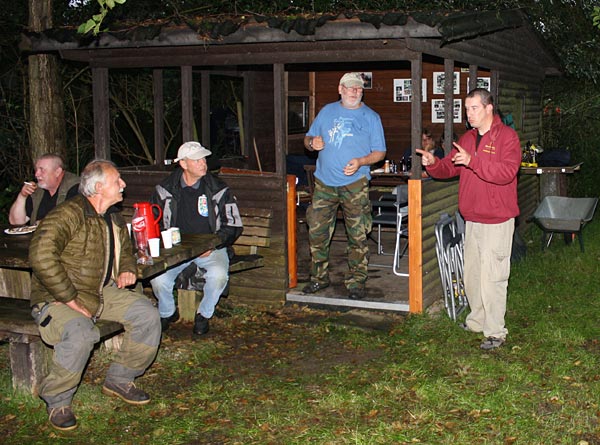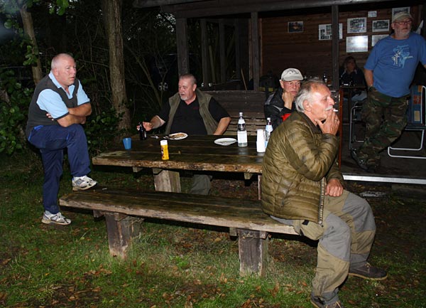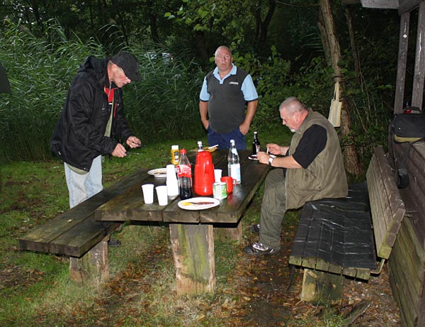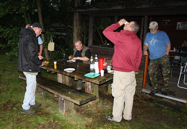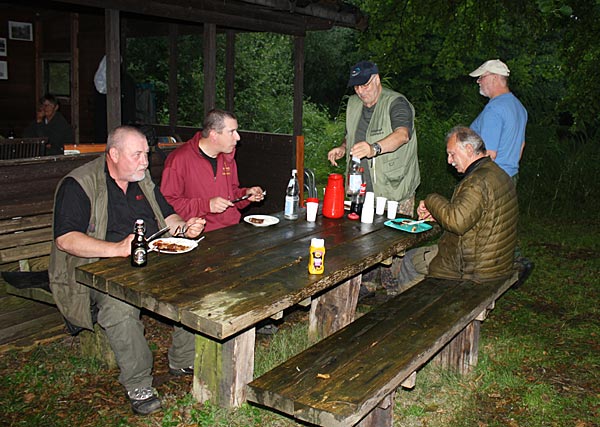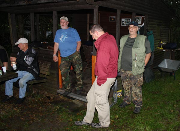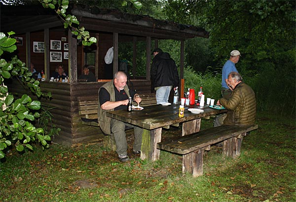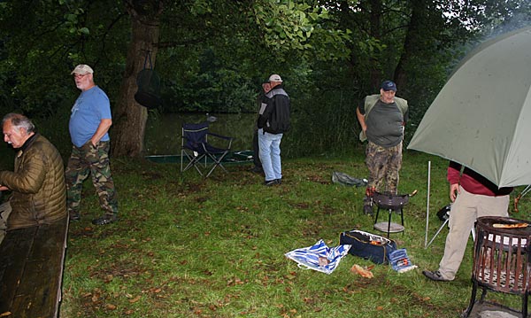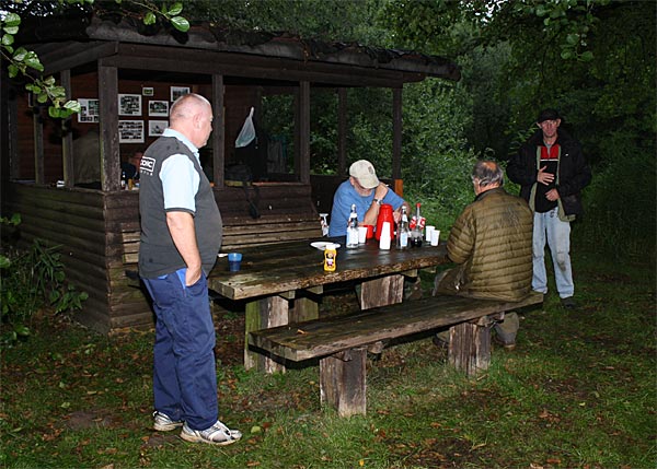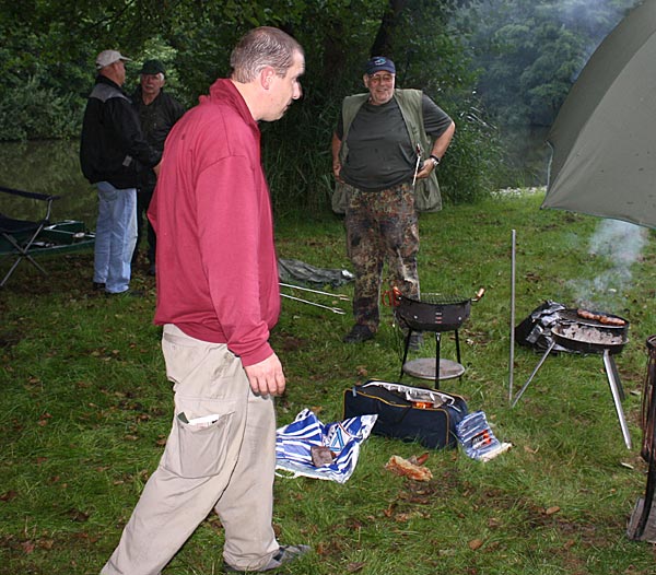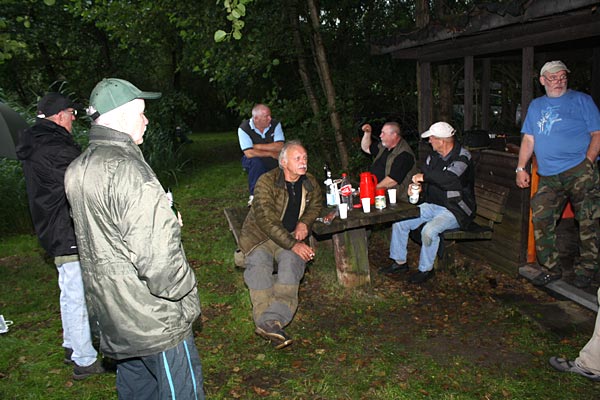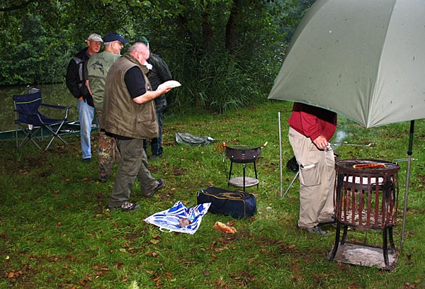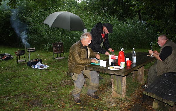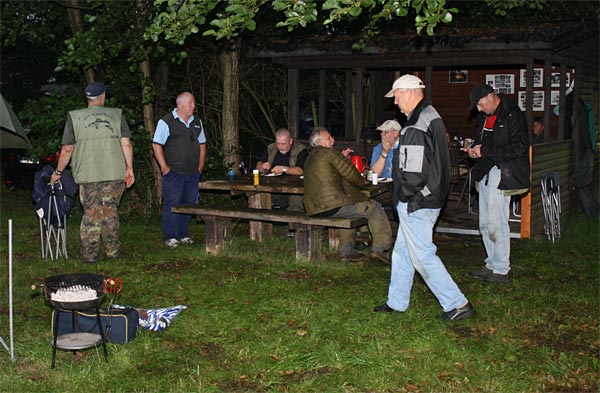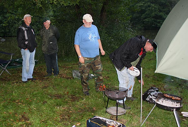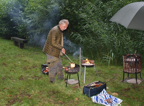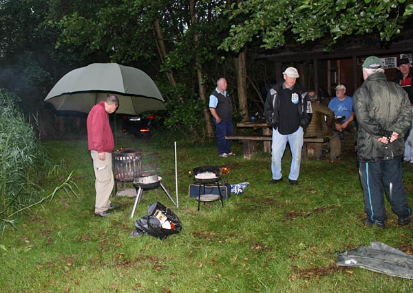 Natürlich kam rechtzeitig zum Grillen (wie jedes Jahr) der Regen. Zumindest konnten wir dieses Jahr trocken wiegen und abbauen. Nur der Fotograf hat wieder alles abbekommen.
