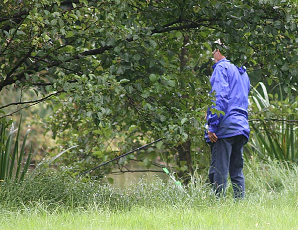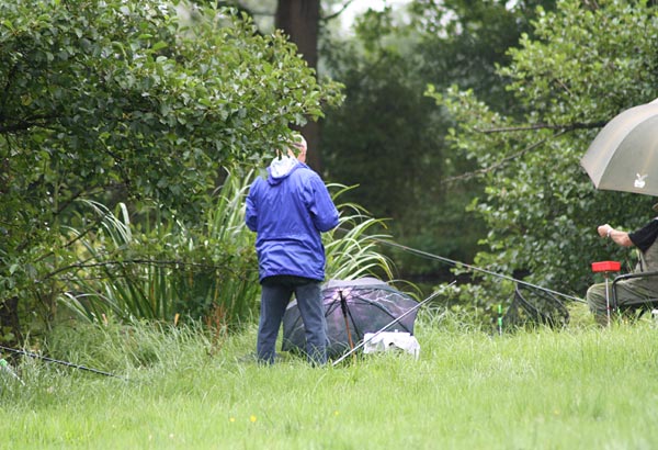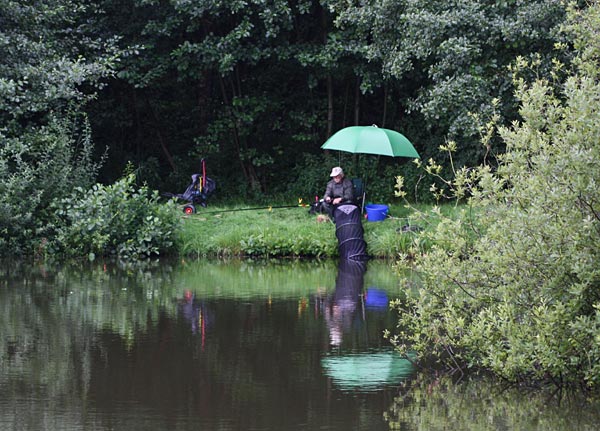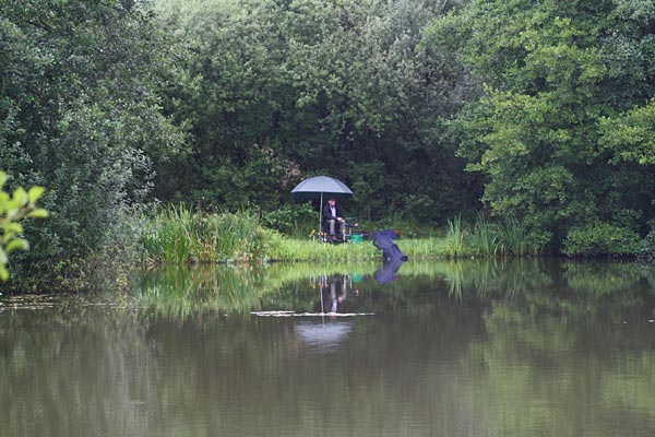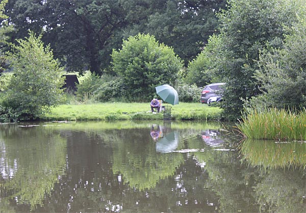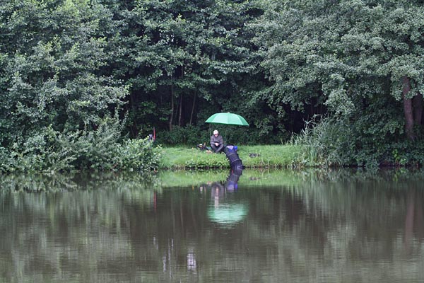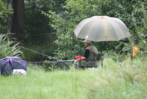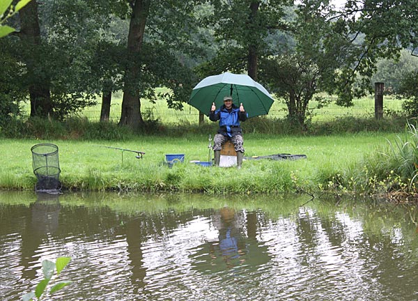Egal, es wird geangelt - dann eben mit Schirm.