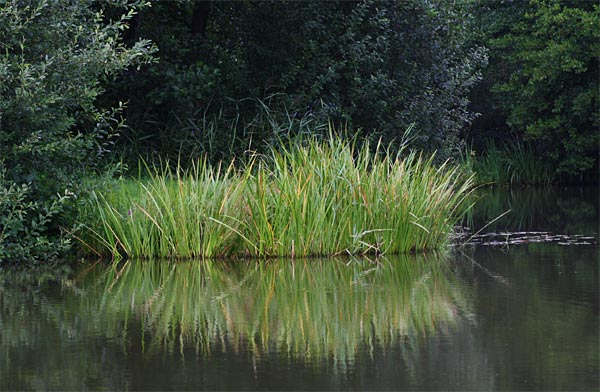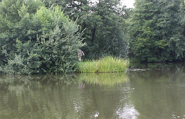 Da ist Irmgard: ganz hinten am Kopf des Teiches. Niemand wollte ihr einen Platz im "Wald" geben....ganz zufrieden war sie mit ihrem Los nicht :-(